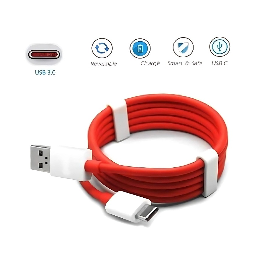 *كابل ون بلس USB إلى Type-C 6A •اللون: أحمر | الطول: متر واحد | الوزن: 40 جرامًا