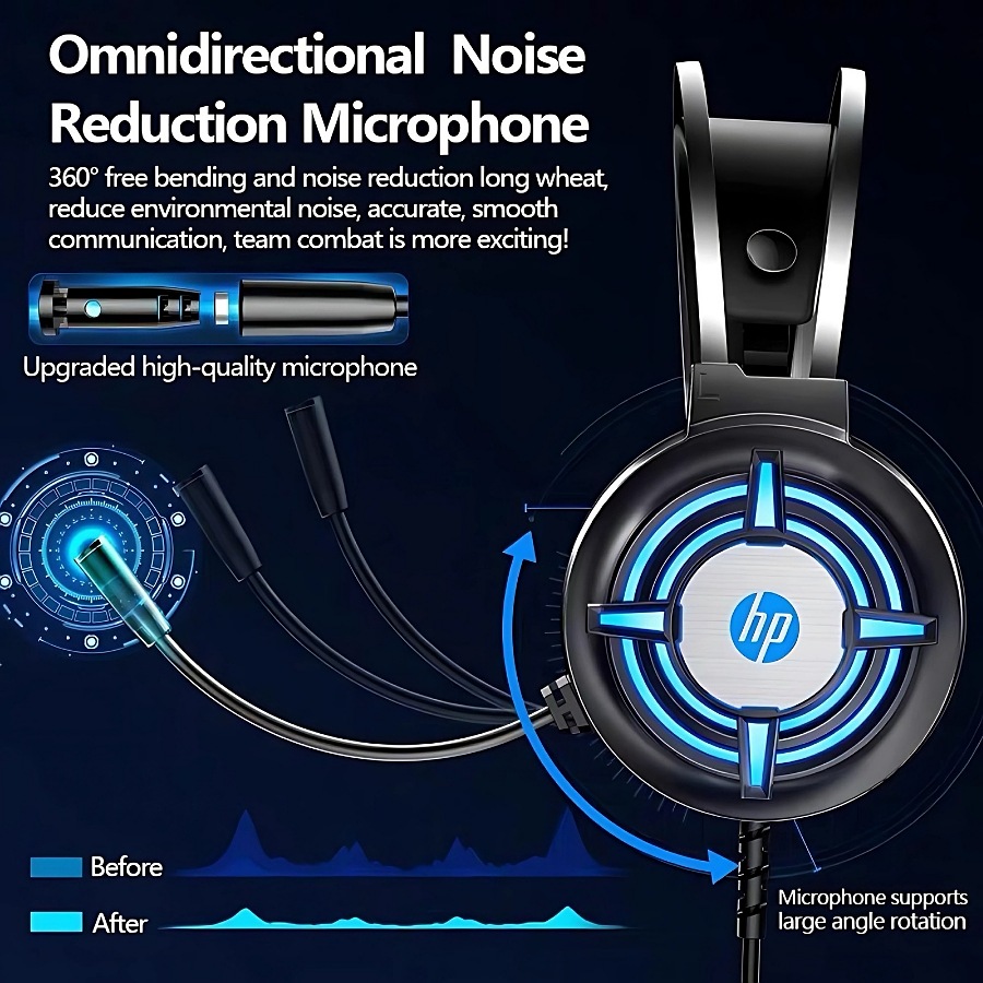 سماعة الرأس hp H120، صوت واضح ونقي، مريحة في الارتداء وناعمة، عزل جيد للضوضاء، تنفس RGB، مع مقبس 3.5، إلغاء الضوضاء.