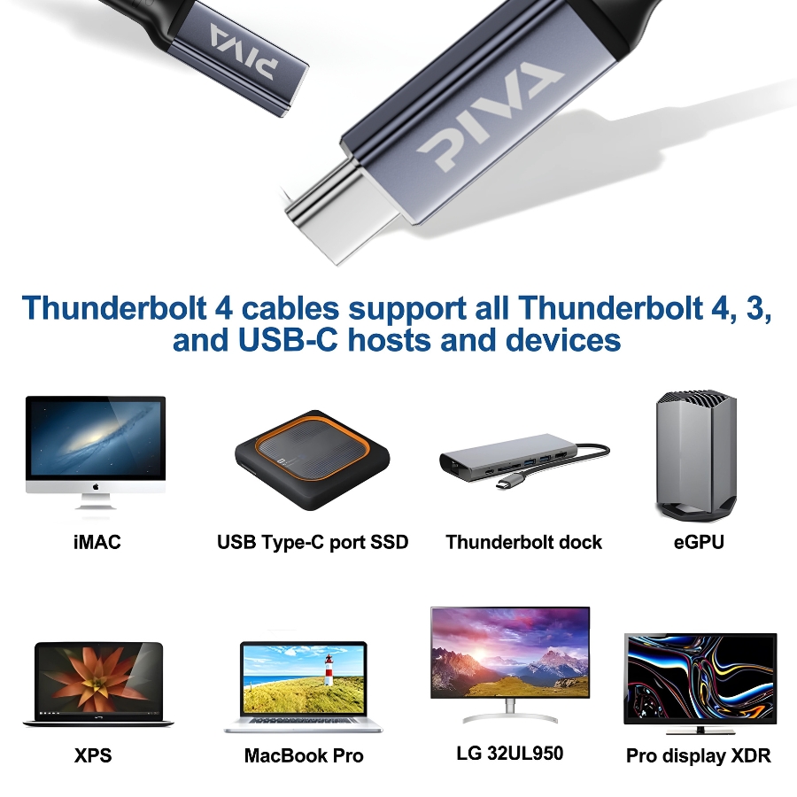 Piva Cable thunderbolt 4 , compatible with most devices that support fast charging, compatible with tablets and laptops and docks and stereos and more, supports 40GB data transfer speed, 240w fast charging, made of copper and sliver, high durability, heat resistant