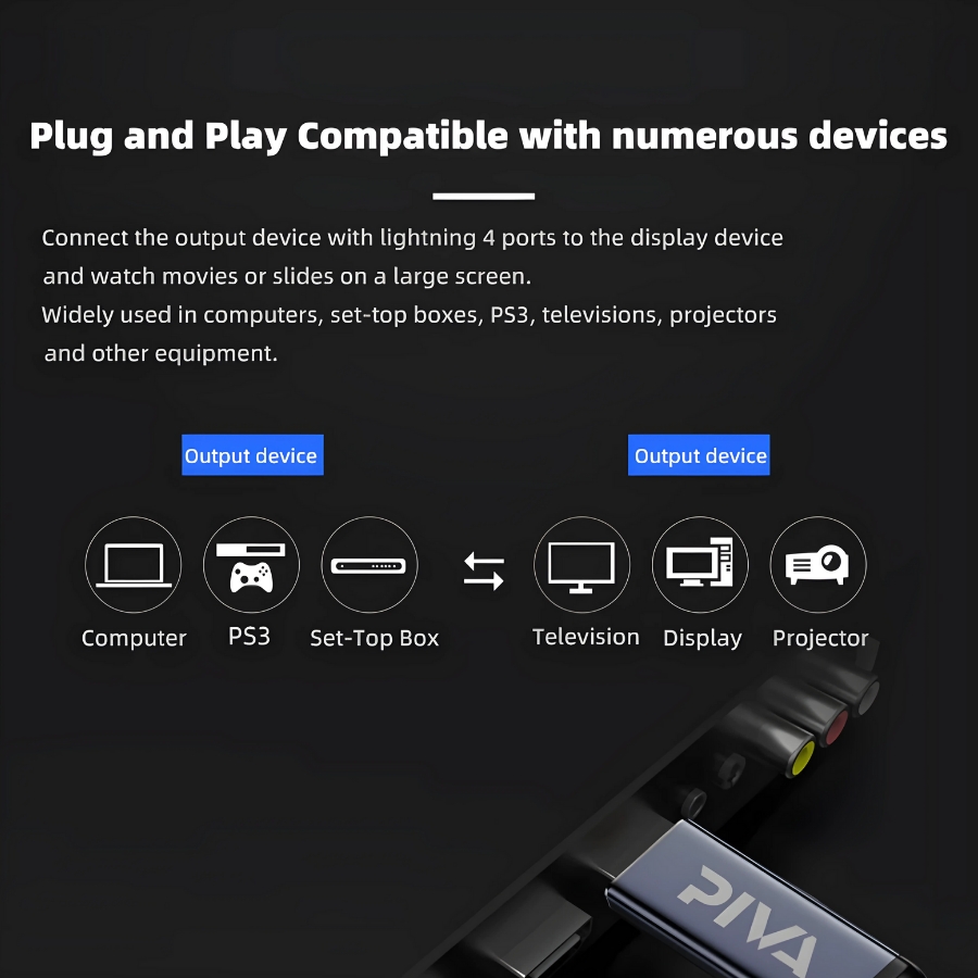 Full Functionality, Coaxial Extension Cable• Plug and Play Compatible with Numerous Devices, Connect the output device with Lightning 4 ports to the display device and watch movies or slides on a large screen. Widely used in computers, set-top boxes, PS3, televisions, projectors, and other equipment