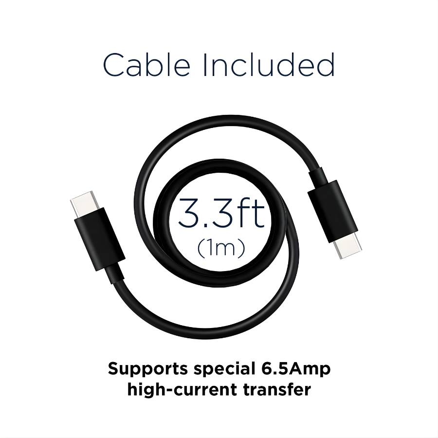 • E-Marked 6.5A USB-C Cable: Includes a 3.3ft (1m) USB-C to USB-C cable rated at 6.5 amps, designed for safe and efficient power transfer.​
