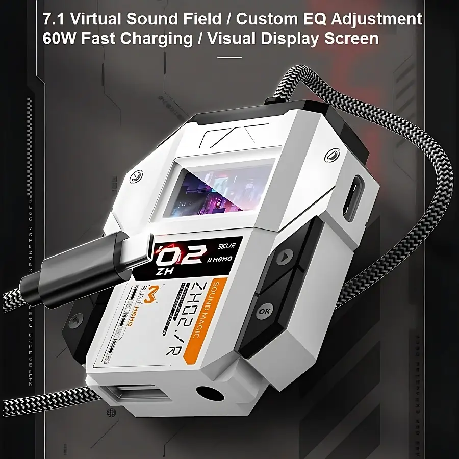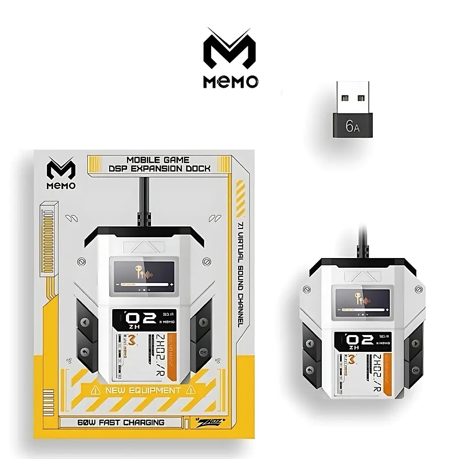 Professional Memo adapter, contains an audio processing chip with the ability to change the frequency through the buttons, contains a Type-C, USB, and 3.5 headphone jack (all ports are available), and a 60-watt charging port. It is suitable for gaming and improves sound quality and stability. It is compatible with most phones, computers, and tablets.