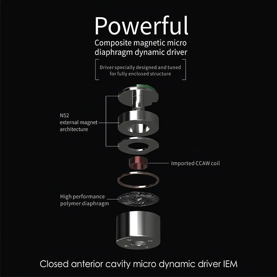 •Specialized high-performance 6mm microexternal magnetic circuit structure dynamic driver