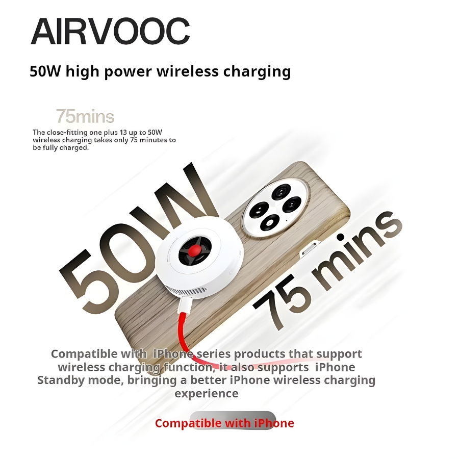 • AIRVOOC 50W, Perfect support for OnePlus 13 50W wireless charging, fully charge your phones in just 75 minutes.