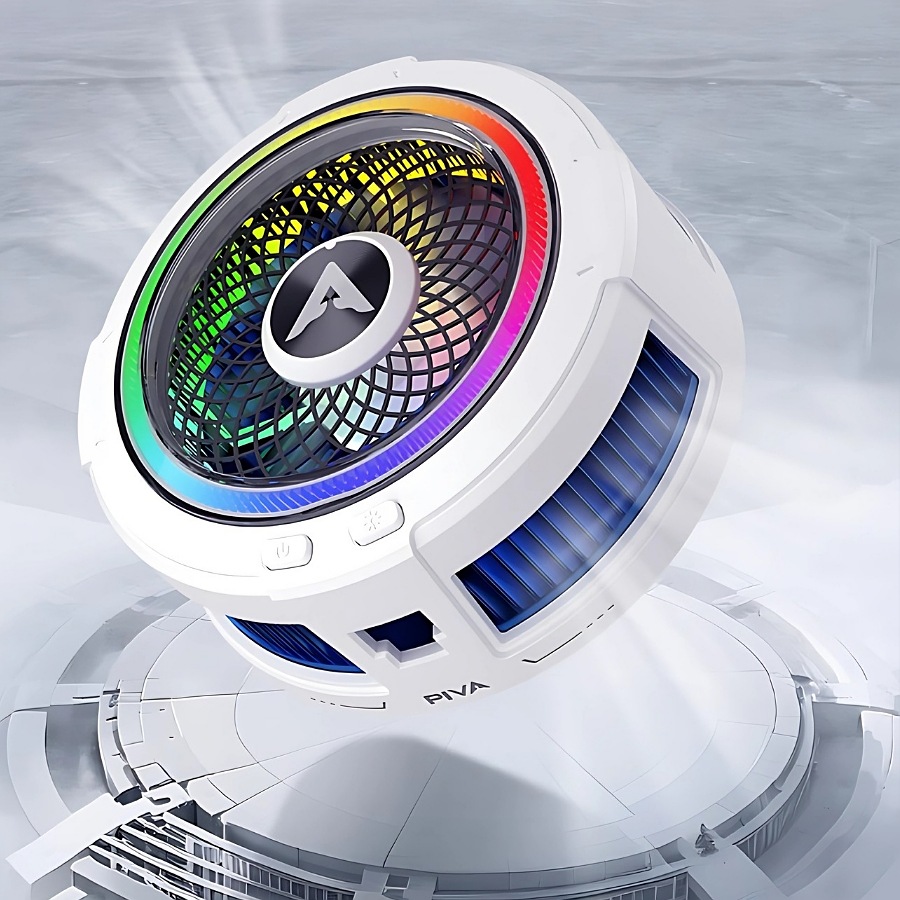 Piva Phone Cooling Fan, 7-blade hight, 20W, Cooling Down to -10 Degrees, 3 RGB Lighting Modes, 2 Cooling Modes, Lightweight and Fits Most Phones