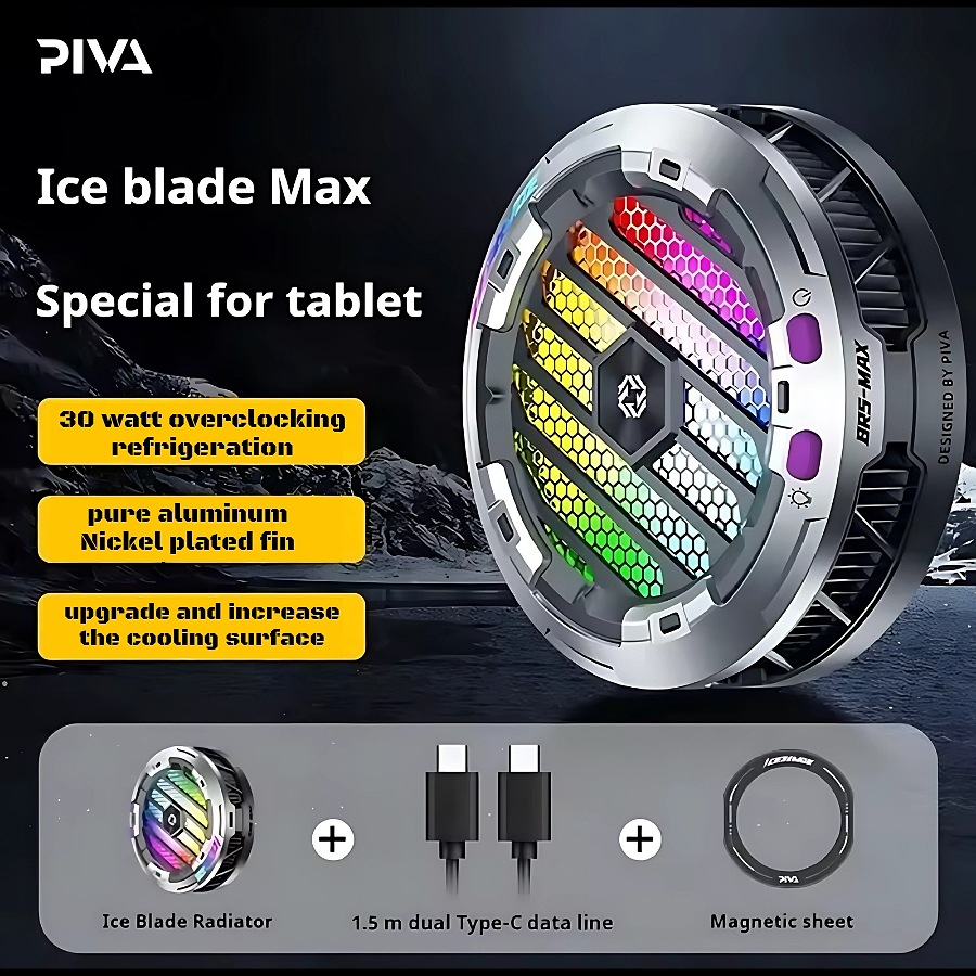 Piva Cooling Fan (BR5-MAX) , Portable Tablet Cooler for Laptops/Tablets/iPads with Adjustable RGB Speed, Fits Most Devices, Suitable for All Tablet Gamers, High-Level Cooling Power