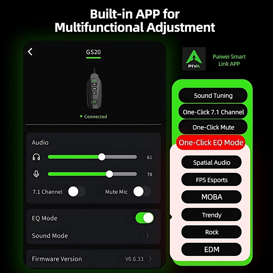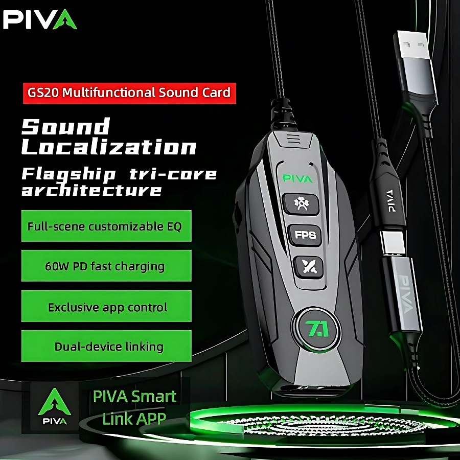 •capable of creating 7.1 sound : surround sound amplifier and sound card. With its compact design and quick installation, this product is a perfect choice for gamers and other professional users. you can control the sound in real time via the PIVA Smart Link APP.