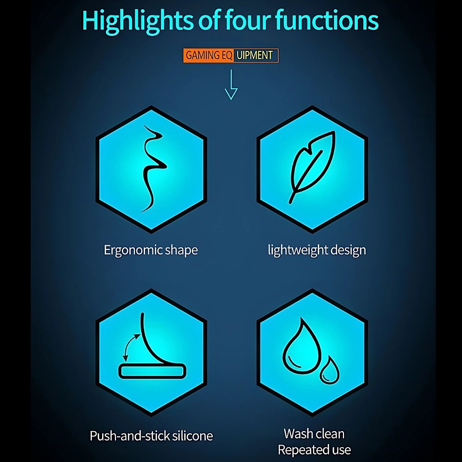 •Material : Silicone + Displacement Stickers•Ergonomic design and easy installation, increases the control of your hands and fingers on the screen.