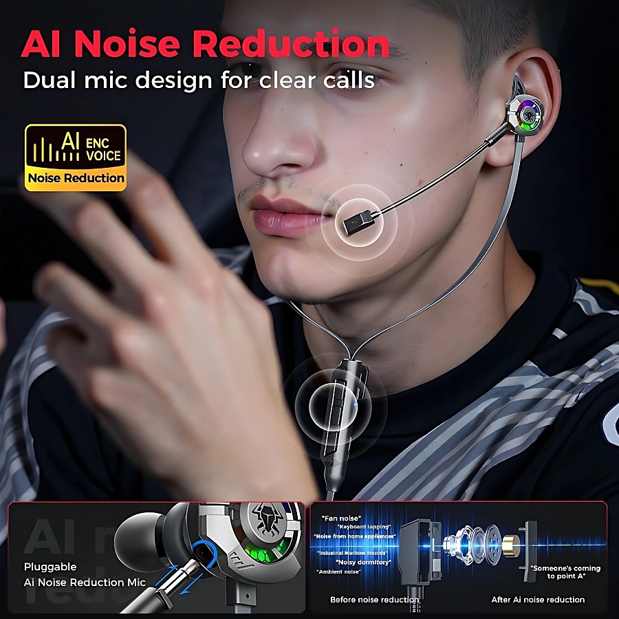 •Al Noise Reduction Dual mic design for clear calls, The sound track will be scanned 48 times per second by the Al call noise reduction algorithm to reconstruct your sound vibration track!