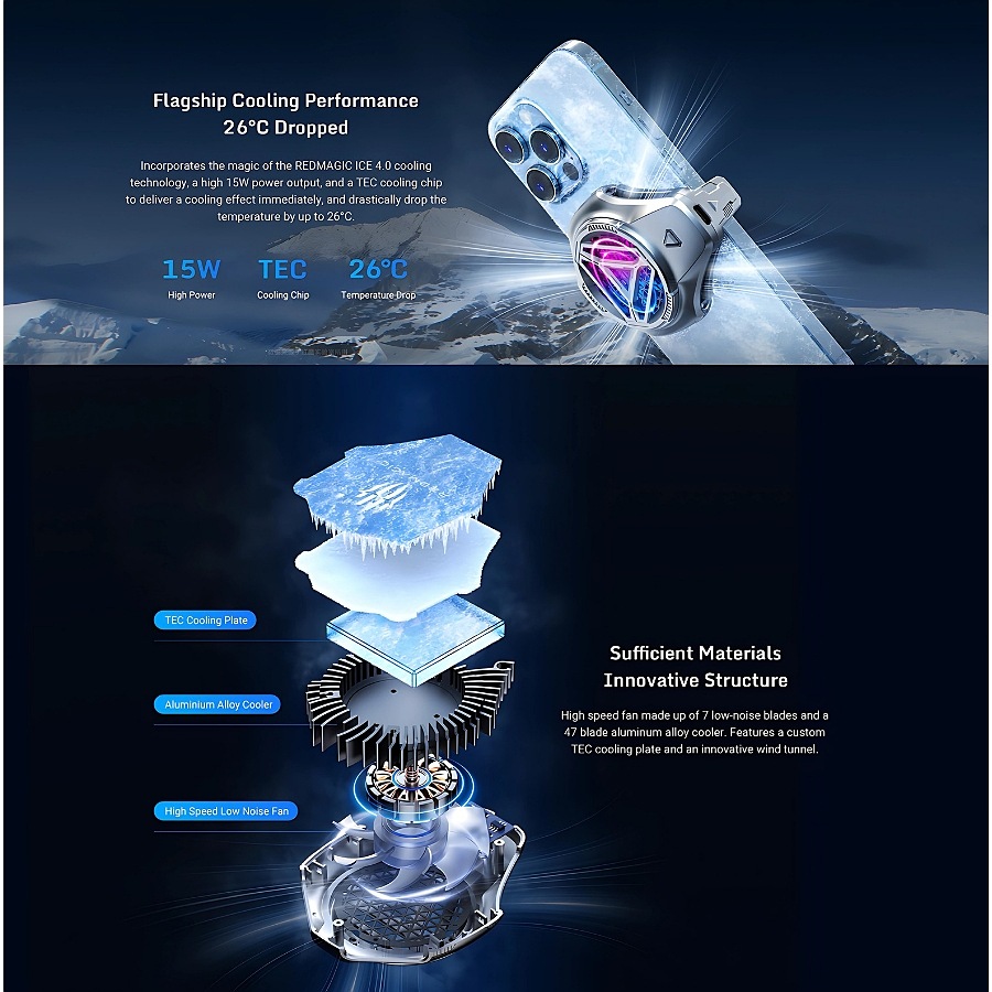 Redmagic 04 clips 15w semiconductor cooler , up to 30c° cooling , Lightweight.. Suitable for gyroscope gamers