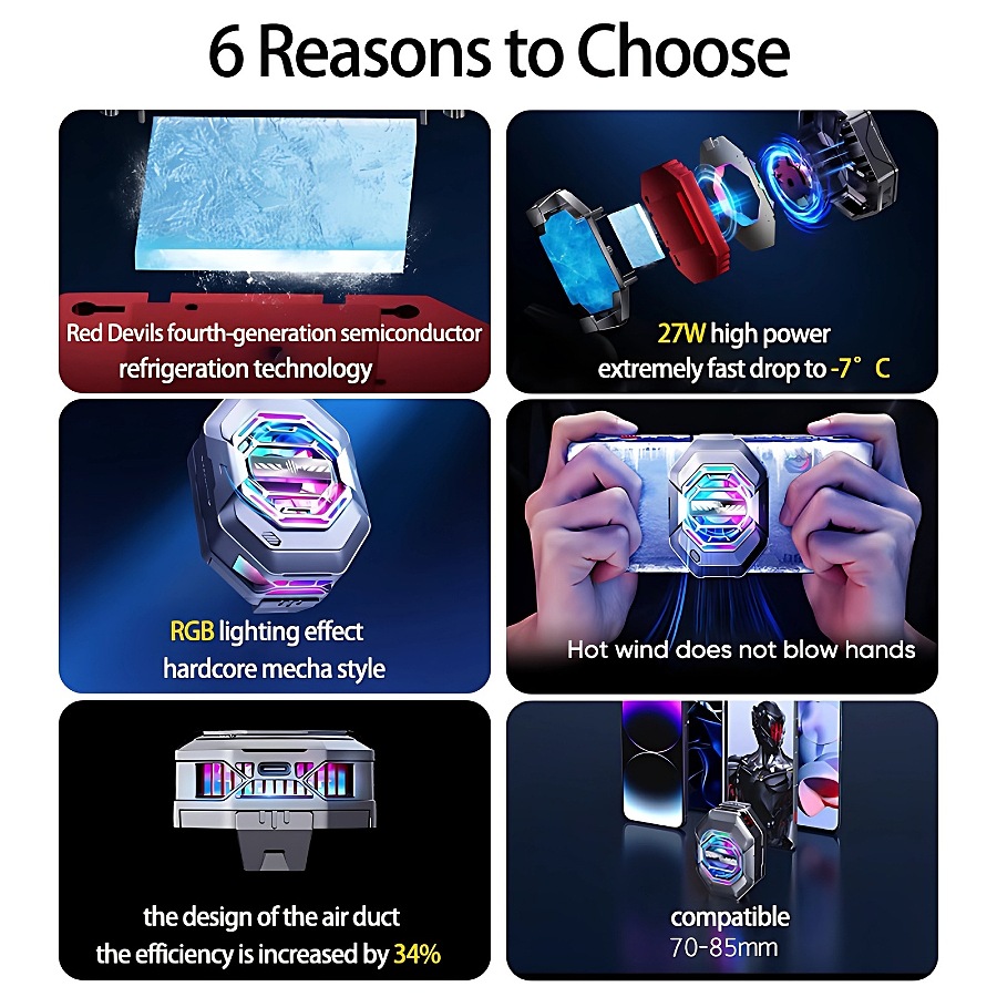 RedMagic Cooler 4 Pro , Ice FanCooler RGB LED 27w Semiconductor Heat Dissipation Cooling For Gaming or heavy use , for all mobiles