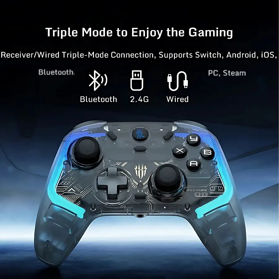RedMagic Cyber Professional Controller, compatible with phones, computers, tablets, Switch, Android TV, etc., smoothly supports 1000Hz gyroscope, 860mAh battery, wired or wireless connection with almost no delay, suitable for game lovers and provides a unique and distinctive experience, suitable for other multiple uses, interactive lighting, can be controlled through the application.