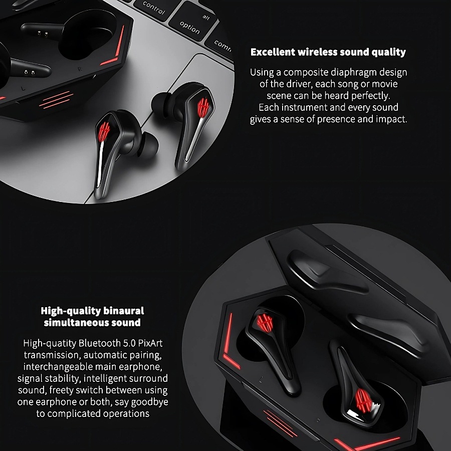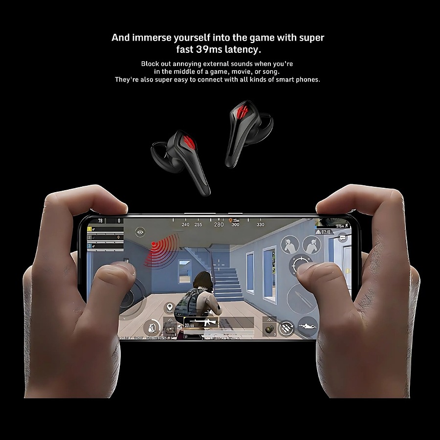 Redmagic Wireless Gaming and Listening earbuds , Ultra Low Latency, Pure Surround Sound and Precise Positioning, Large Battery Capacity and Lightweight, Bluetooth 5.0, with Interactive Lighting