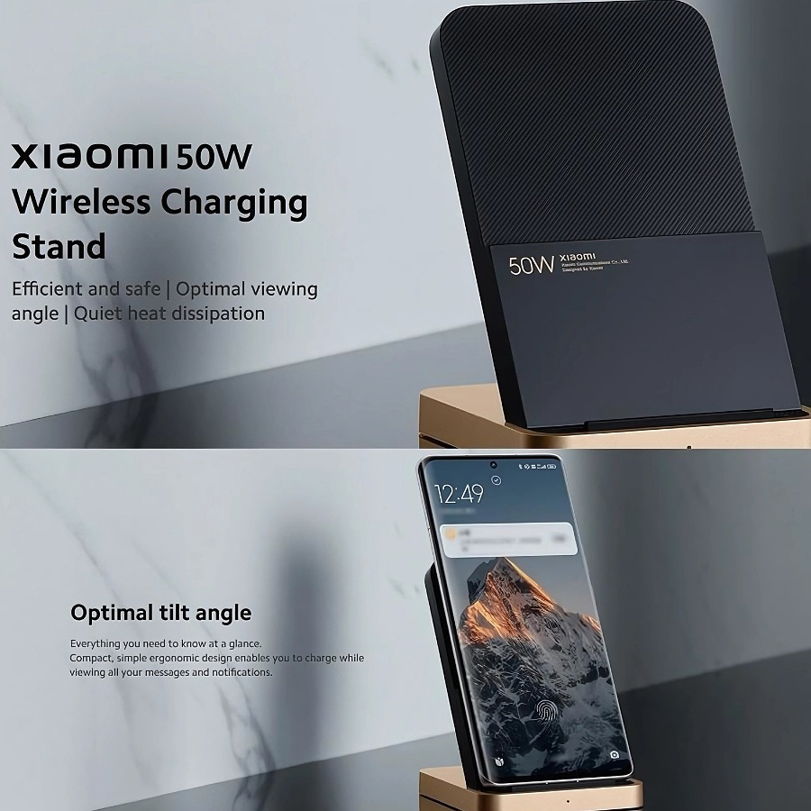 Xiaomi Wireless Charger, 50W, Compatible with most phones that support wireless charging, Contains an internal fan for cooling, Possibility of horizontal or vertical charging, Smart safety system, Comes inside the box with a 67W wired charger and a cable suitable for office and home work, Easy to use